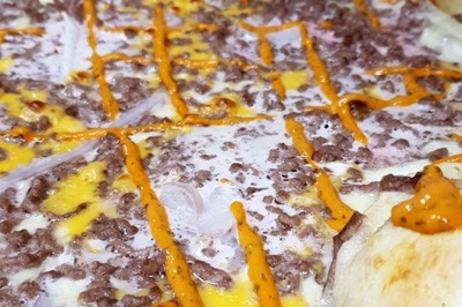 Base crème, Mozzarella 100%, cantal 100%, viande hachée, échalote fraîche, cheddar, sauce burger.