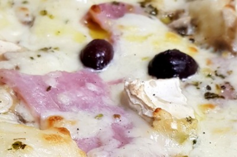 Base crème, champignons frais, jambon blanc, mozzarella 100%, chèvre 100% et persillade maison.