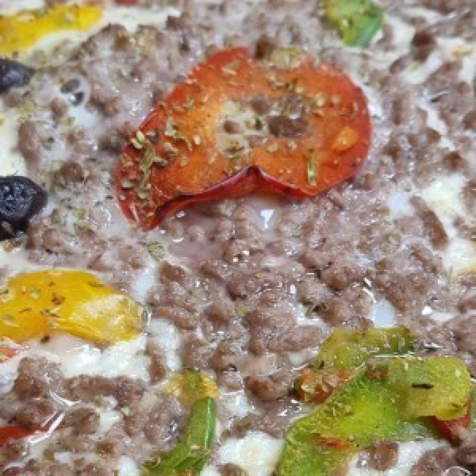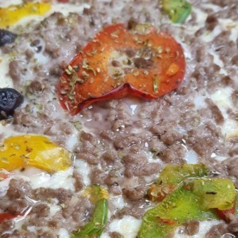 Base tomate, viande hachée Charal, mozzarella 100%, poivrons frais et oeuf.