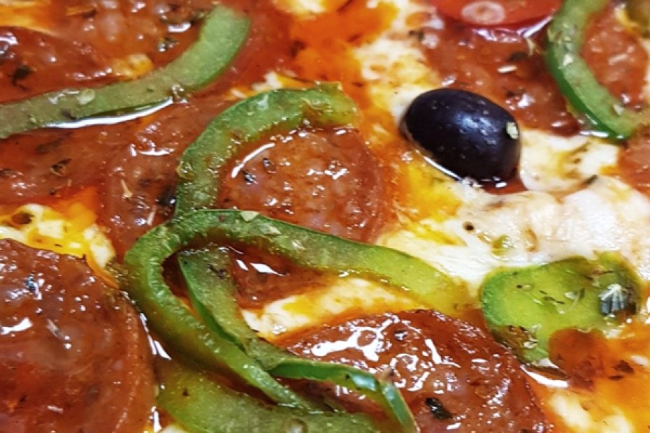 base tomate, mozzarella moelleuse,poivron, pepperoni